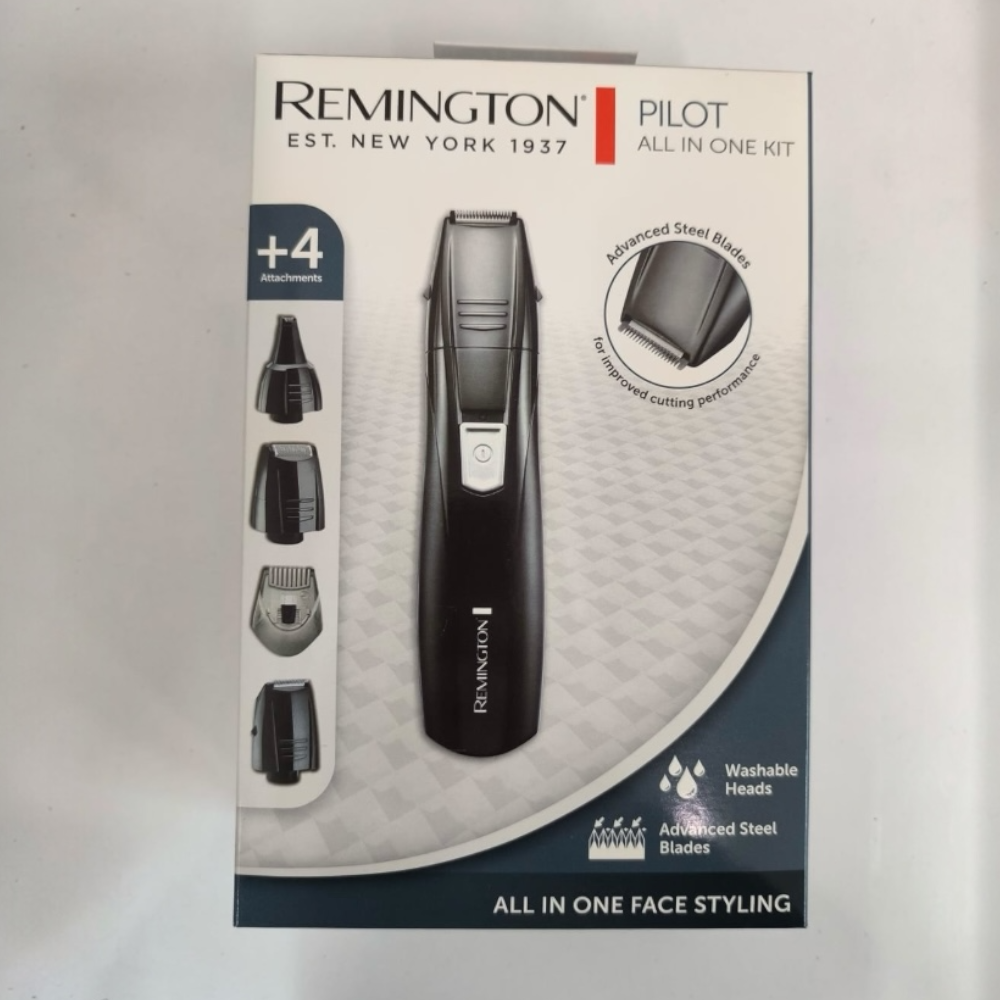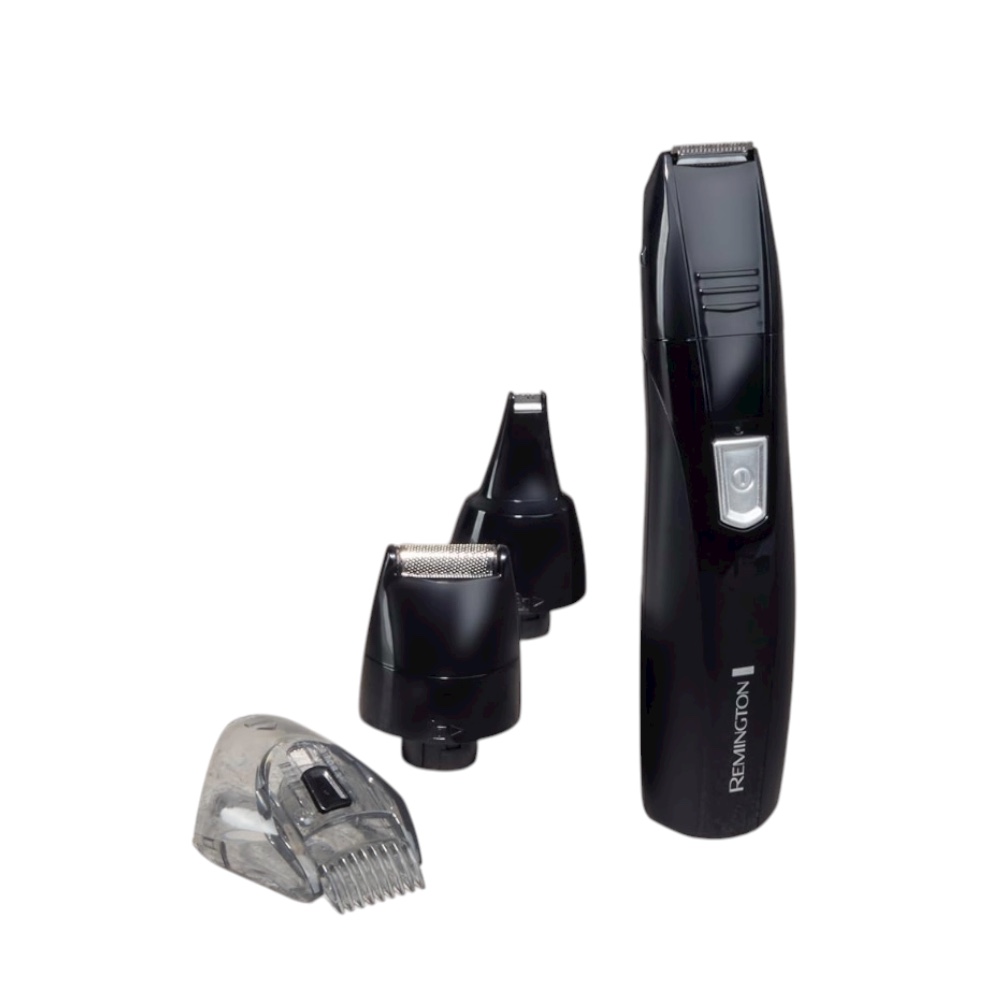 REMINGTON PG180 is a multifunctional beard and hair trimmer that operates on AA batteries, offers adjustable cutting lengths from 0.5 to 5 mm, and is washable with water.