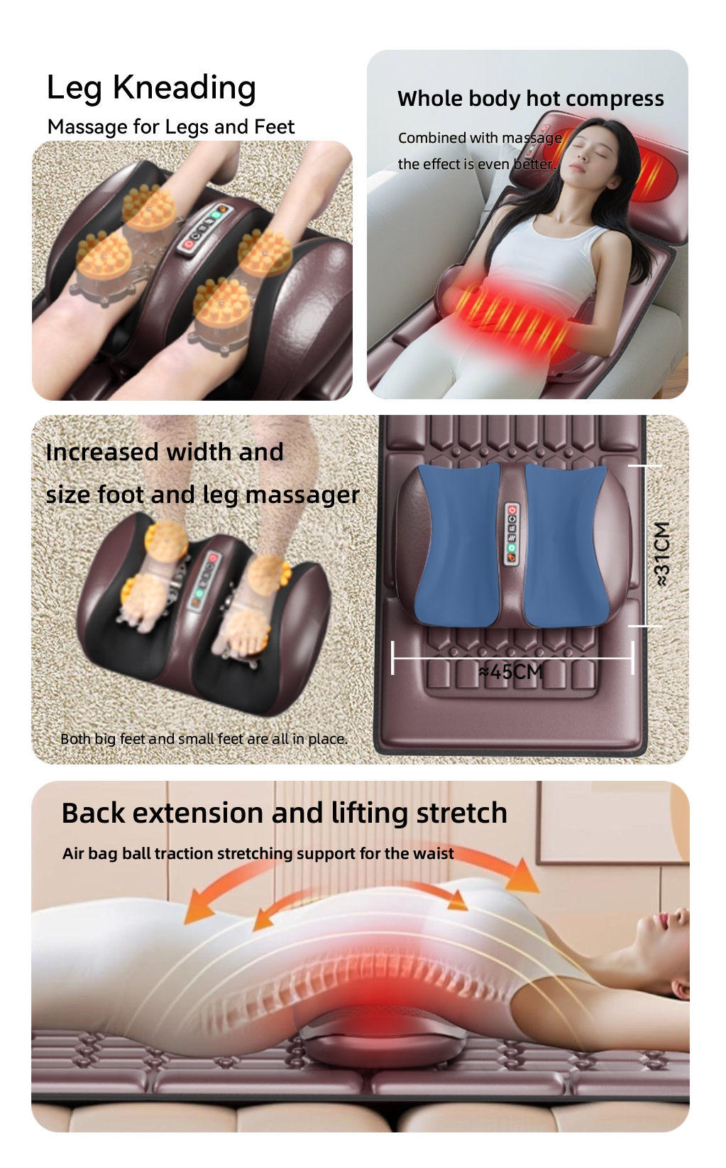 Massage area: neck, shoulders, waist, legs