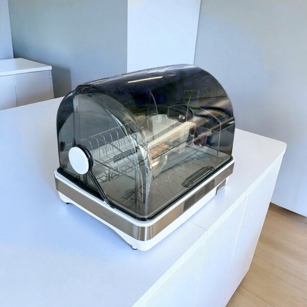 The tool drying device is an electric appliance that dries instruments using circulating hot air. It features a built-in timer with a maximum duration of 55 minutes. In addition to drying, the device performs sterilization through ultraviolet (UV) light. This UV technology ensures thorough disinfection of tools. The unit stands out for its high quality, generous capacity, and user-friendly operation.